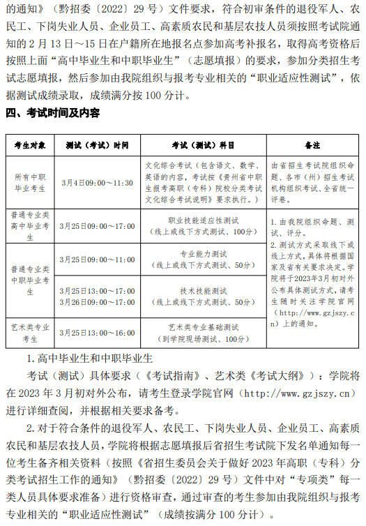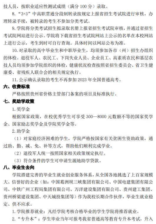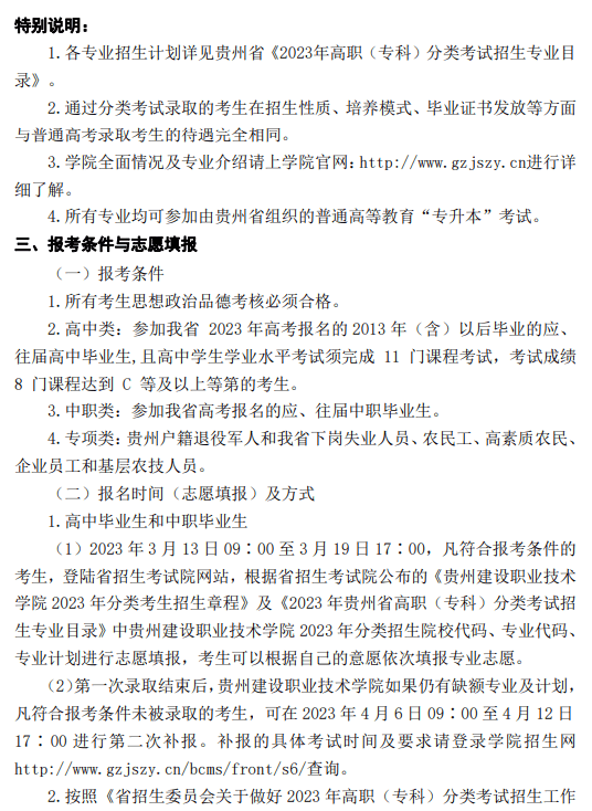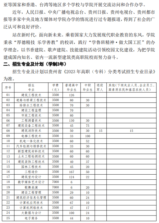 贵州建设职业技术学院2023年分类考试招生简章